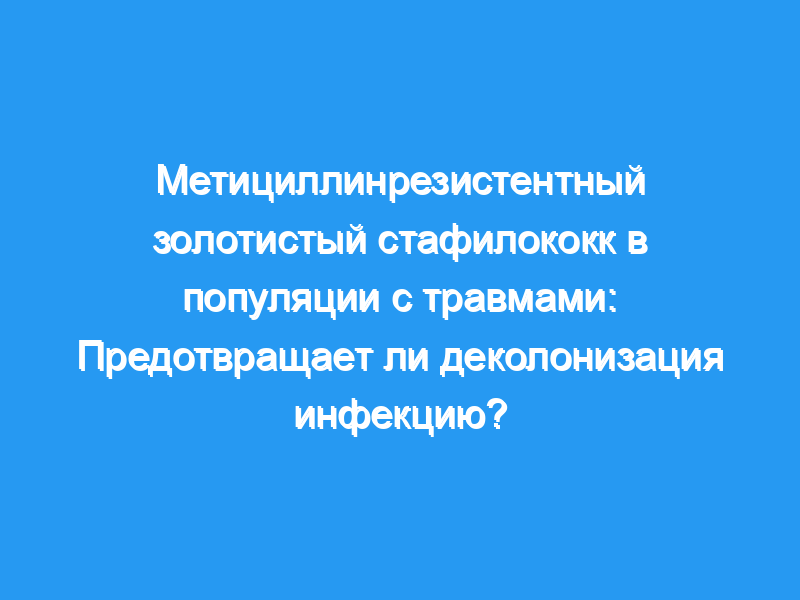 Целью этого исследования было определить, снижает ли режим колонизации частоту метициллинрезистентных инфекций золотистого стафилококка (MRSA) и генетически ли колонизационные изоляты связаны с последующим инфекционным штаммом.