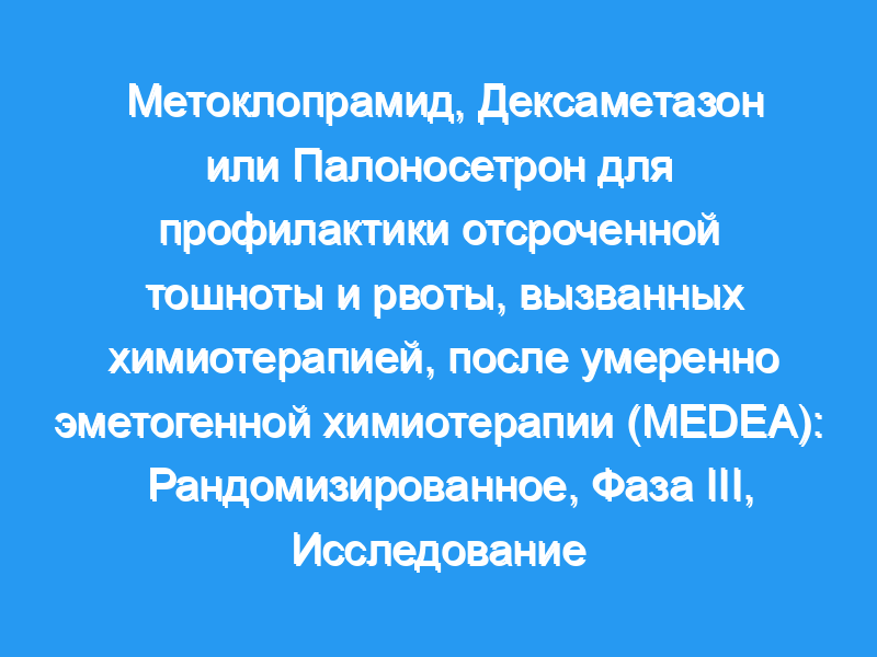 Это исследование показало, что DEX-щадящие схемы не уступают многодневным DEX с точки зрения замедленной скорости TC у пациентов, перенесших MEC. ClinicalTrials.gov идентификатор. NCT02135510. Последствия для практики: Вызванные химиотерапией тошнота и рвота (CINV) в отсроченной фазе (24-120 часов после химиотерапии) остаются одним из наиболее неприятных побочных эффектов, связанных с лечением рака. В частности, отсроченная тошнота часто плохо контролируется. Роль дексаметазона (DEX) в предотвращении отсроченной тошноты после умеренно эметогенной химиотерапии (MEC) является спорной. Это исследование является первым, в которое оценка тошноты включена как часть результатов первичного исследования, чтобы лучше оценить эффективность контроля CINV и опыт пациентов. Результаты показывают, что ДЕКС-щадящая стратегия не приводит к какой-либо значительной потере общего противорвотного контроля: ДЕКС-щадящие стратегии, включающие палоносетрон или многодневный метоклопрамид, безопасны и, по крайней мере, так же эффективны, как стандартное лечение с 3-дневным режимом ДЕКС с ондансетроном, в борьбе с отсроченным CINV — и, в частности, с тошнотой -после MEC.