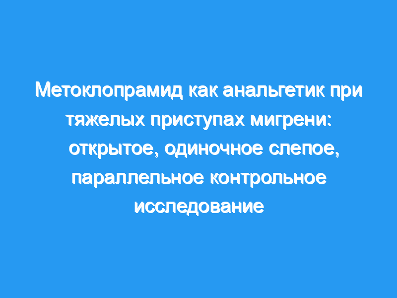 Мы решили провести открытое, одиночное слепое параллельное контрольное исследование в отделении неотложной помощи для оценки эффективности и переносимости метоклопрамида у пациентов с тяжелыми приступами мигрени.