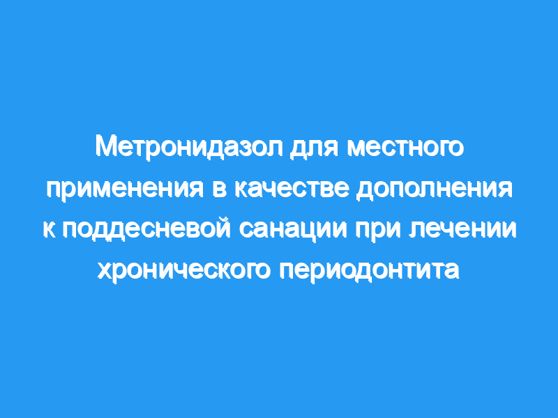 Эти результаты указывают на то, что местный метронидазол обеспечивает эффективное дополнительное лечение запущенного пародонтита.