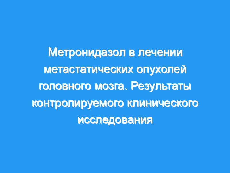 Мы измерили влияние усилителя излучения метронидазола на пациентов с метастатическими опухолями головного мозга, проходящих лучевую терапию (ЛТ) в рандомизированном контролируемом исследовании.