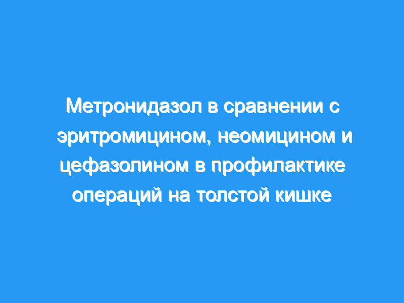 Было проведено проспективное двойное слепое рандомизированное исследование для сравнения периоперационного парентерального приема метронидазола и эритромицина, одного неомицина и цефазолина. Пятьдесят пять пациентов были рандомизированы аптечным отделом на две группы.