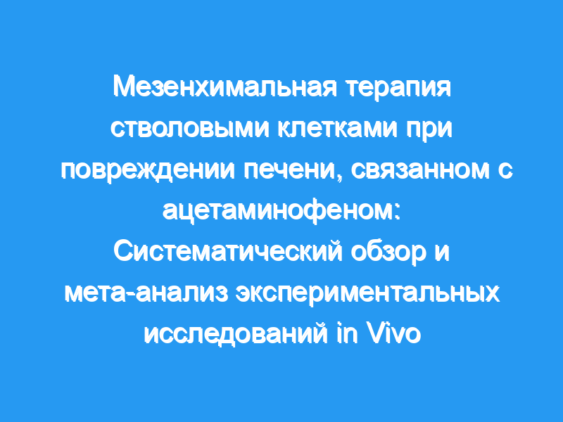 Эффективность терапии мезенхимальными стволовыми клетками (МСК) при повреждении печени, вызванном ацетаминофеном, была исследована в экспериментах на животных, но отдельные исследования с небольшим размером выборки не могут быть использованы для получения четкого вывода. Поэтому мы провели систематический обзор и мета-анализ доклинических исследований, чтобы изучить потенциал использования МСК при повреждении печени, вызванном ацетаминофеном.