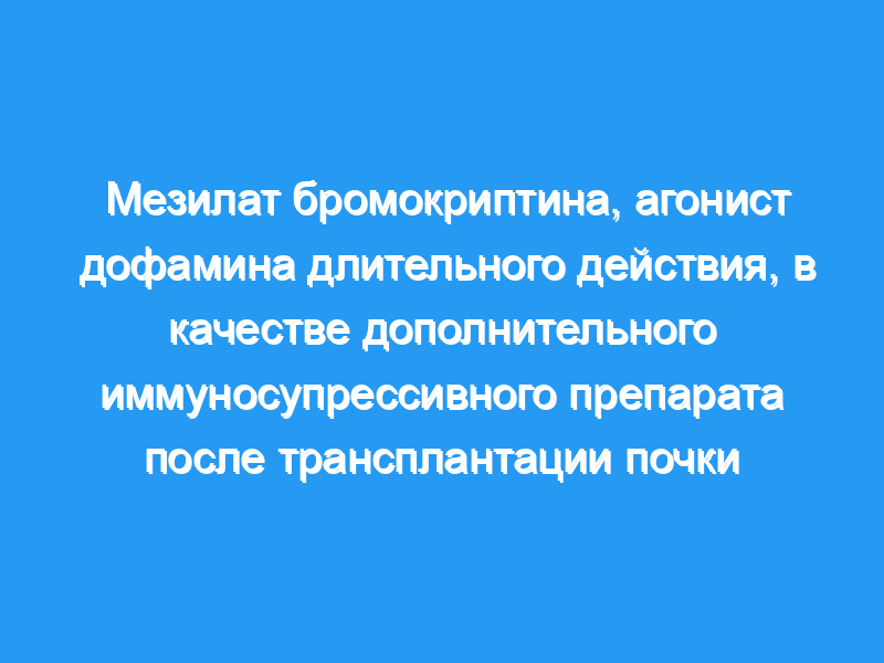 Подавление концентрации циркулирующего пролактина бромокриптином не улучшало клинический исход у пациентов после трансплантации почки, получавших циклоспорин и преднизолон.