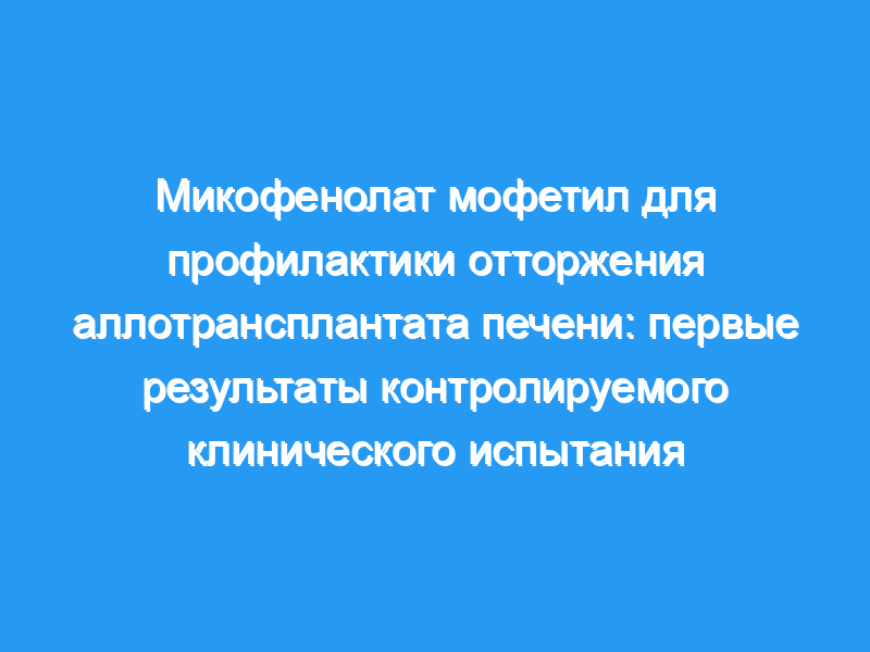 Микофенолат Мофетил (M MF) — это новое иммунодепрессивное средство с доказанной эффективностью для профилактики отторжения почечного аллотрансплантата. Однако имеется лишь небольшой опыт применения ММФ у реципиентов трансплантата печени.
