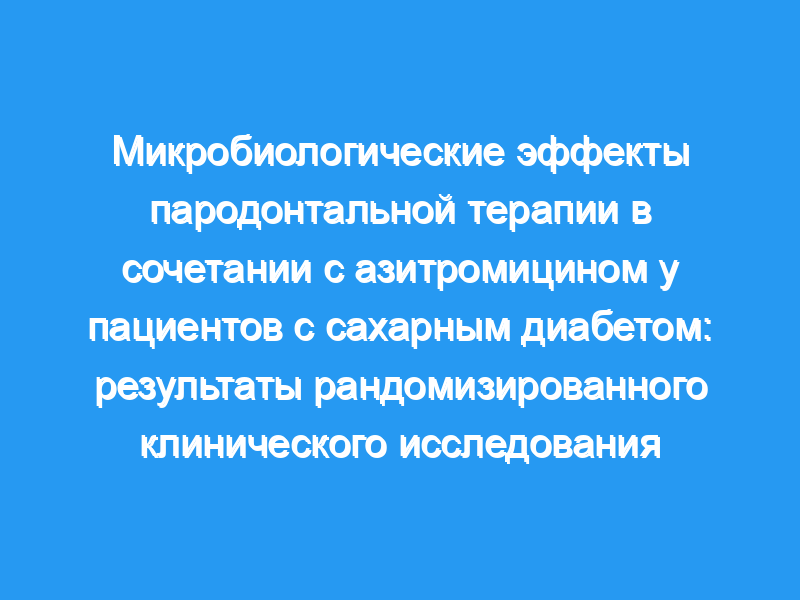 Поддесневая механическая терапия дополнительным азитромицином не оказала дополнительного влияния на частоту, с которой исследованные патогены пародонта были обнаружены. выявляется у пациентов с сахарным диабетом.