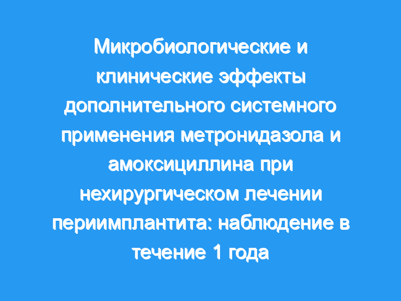 Эти результаты предполагают, что добавление MTZ и AMX к протокол лечения пациентов, перенесших НСД по поводу тяжелого периимплантита, не улучшает клинические и микробиологические исходы НСД. Тот факт, что половина имплантатов в обеих группах не достигла клинического успеха (PD & lt, 5 мм, отсутствие BoP, отсутствие потери костной массы), свидетельствует о том, что ни один из протестированных протоколов не был эффективным для лечения тяжелого периимплантита.