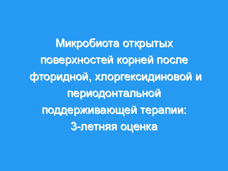 В этом исследовании приняли участие тридцать три пациента из программы ухода за пародонтом, у которых был по крайней мере один зуб с рецессией десны в каждом квадранте. Один зуб на квадрант был случайным образом отнесен к контрольной группе или к одной из тестовых групп, которые были обработаны фторидным лаком, 1% CHX или 40% CHX. Обработку лаком и чистку зубов повторяли каждые 3 месяца. Клинические обследования проводились на начальном этапе и один раз в год в течение 3 лет. Состояние кариеса и показатели гигиены полости рта оценивались клинически. Анализировали общую культивируемую микробиоту и процентное содержание мутантных стрептококков (MS), актиномицетов (ACC) и лактобацилл (LB).