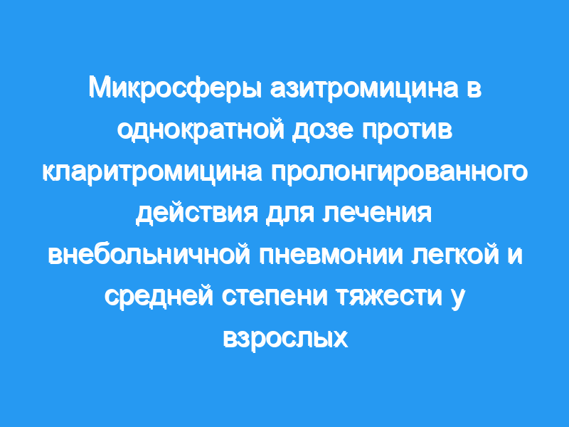 Однократная доза микросфер азитромицина в дозе 2,0 г была столь же эффективной и хорошо переносимой, как и 7-дневный курс кларитромицина с пролонгированным высвобождением при лечении взрослых с ВП легкой и средней степени тяжести.