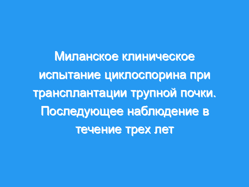 В период с февраля по ноябрь 1983 года 108 реципиентов трупных трансплантатов почек приняли участие в рандомизированном многоцентровом исследовании и получали лечение либо циклоспорином (CsA) и преднизоном (n = 55), либо традиционным лечением, основанным на азатиоприне (Aza) и глюкокортикоидах (n = 53). Вероятность выживания трансплантата через 3 года составила 76% для пациентов с CsA и 48% для пациентов с Aza (Р менее 0,001). Совокупное число острых отказов было значительно ниже в группе CsA (32 против