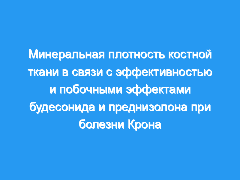 Предпосылки и цели: Остеопороз часто возникает при болезни Крона, часто из-за кортикостероидов. Будесонид в виде капсул с контролируемым высвобождением является кортикостероидом местного действия с низкой системной биодоступностью. Мы исследовали его влияние на костную ткань по сравнению с преднизолоном.