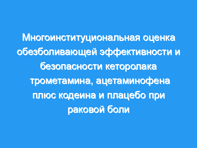 Семьдесят пять пациентов с умеренной или тяжелой болью при раке были рандомизированы двойным слепым методом для получения первой дозы кеторолака трометамина 10 мг перорально, ацетаминофена 600 мг плюс кодеин 60 мг перорально или плацебо, с последующим приемом последующих доз кеторолака или ацетаминофена плюс кодеин четыре раза в день в течение 7 дней. день.