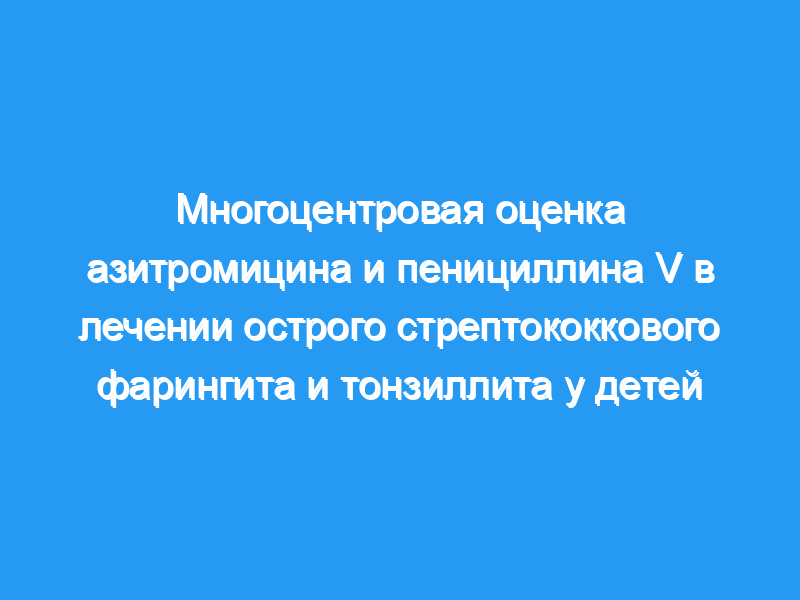 Из 96 детей (в возрасте 2-12 лет) с острым фарингитом или острой ангиной 49 получали однократную суточную дозу азитромицина 10 мг/кг (максимум 500 мг) в течение трех дней, а 47 получали пенициллин V в дозе 125 мг или 250 мг в сутки (в зависимости от массы тела) в течение десяти дней.