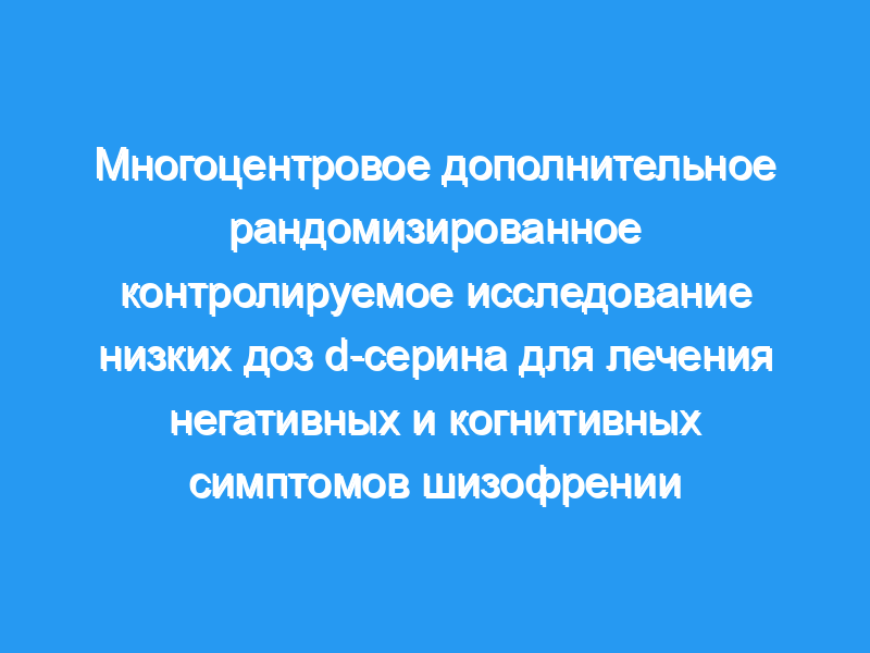 Наблюдения за тем, что антагонисты рецептора N-метил-d-аспартата (NMDA) глутаматергических нейронов могут имитировать симптомы шизофрении, вселили надежду на то, что агонисты NMDA могут улучшить симптомы. На основании обнадеживающих результатов испытаний, в которых к нейролептикам добавляли агонисты NMDA, мы провели рандомизированное контролируемое исследование с адекватной мощностью, в котором к нейролептикам добавляли d-серин, модулятор NMDA. Метод: Это исследование представляло собой многоцентровое двойное слепое рандомизированное плацебо-контролируемое 16-недельное исследование d-серина в дозе 2 г/сут с участием 195 пациентов в качестве дополнительного лечения нейролептиками. У испытуемых была шизофрения DSM-IV или шизоаффективное расстройство, и они находились на стационарном или амбулаторном лечении, стабилизированном на нейролептиках, с постоянными негативными симптомами. Основными показателями результата были изменения в негативных симптомах и когнитивных способностях, измеренные Шкалой оценки негативных симптомов (SANS) и шкалой измерения и исследования лечения для улучшения когнитивных способностей при шизофрении (MATRICS) соответственно. Исследование проводилось в период с 2003 по 2007 год.
