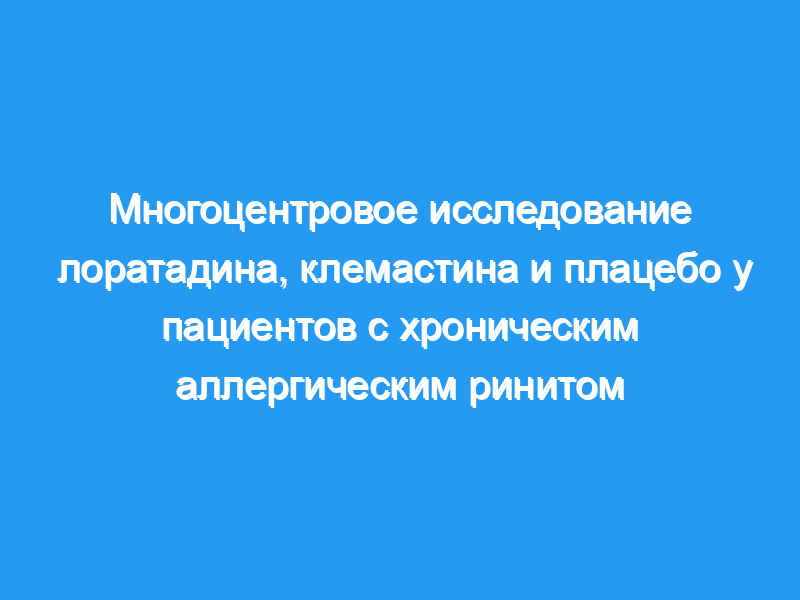 В этом многоцентровом двойном слепом рандомизированном исследовании с параллельными группами сравнивалось 3-недельное лечение лоратадином (Кларитин) в дозе 10 мг один раз в день или клемастином (Тавегил) в дозе 1 мг два раза в день и плацебо у амбулаторных пациентов с активным хроническим аллергическим ринитом.