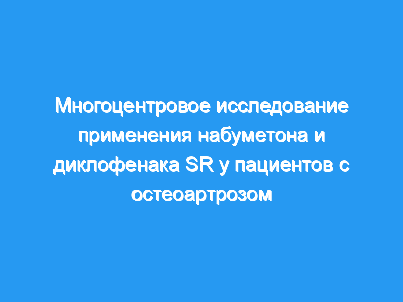 Набуметон в дозе 1000-1500 мг в день сравнивали с диклофенаком SR в дозе 100-150 мг в день в течение 6 месяцев.- месячное, двойное слепое, рандомизированное, контролируемое, многоцентровое, параллельное исследование. Начальные начальные дозы составляли 1000 мг набуметона в день и 100 мг диклофенака SR в день, при необходимости допускается последующее одноуровневое титрование дозы через 2 недели на более низкой дозе до 1500 мг набуметона и 150 мг диклофенака SR. Основными показателями результата были общая боль и активность заболевания, оцененные врачом и пациентом. Вторичные показатели эффективности включали болезненность, отек, ограничение движений, продолжительность утренней скованности, потребление ацетаминофена, общую оценку врачом и пациентом, а также оценку пациентом эффективности и переносимости. После первоначального скринингового визита и 2-7-дневного периода отмены нестероидных противовоспалительных препаратов (т.е. рандомизации) пациенты были обследованы на 2, 8, 14, 20 и 26 неделях.