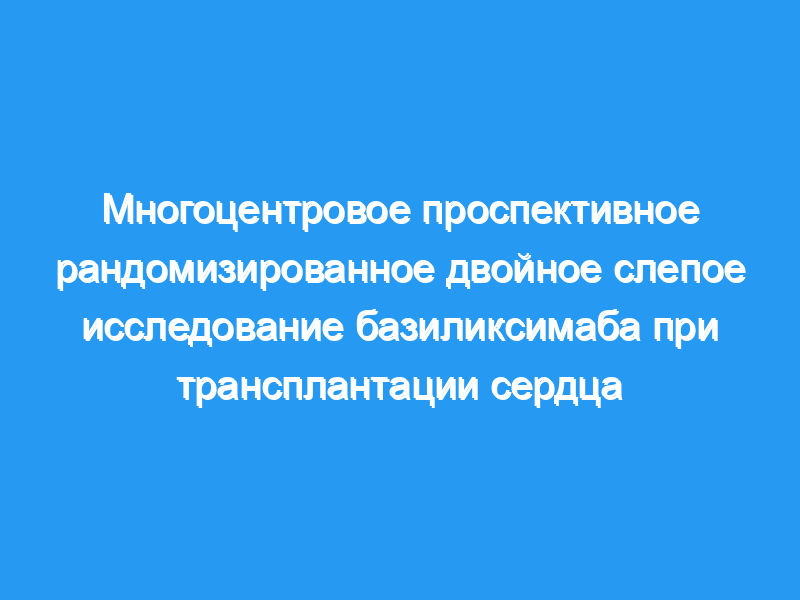 Роль и фармакокинетика моноклональных антител к интерлейкину-2 (IL-2) (MAB) при трансплантации сердца остаются неясными. В этом 1-летнем двойном слепом рандомизированном плацебо-контролируемом исследовании оценивались безопасность, переносимость и фармакокинетика ИЛ-2 мАб базиликсимаба с циклоспорином, микофенолатом мофетилом и стероидами у взрослых реципиентов трансплантата сердца de novo. Пятьдесят шесть пациентов получали либо базиликсимаб (20 мг), либо плацебо на 0-й и 4-й дни после трансплантации. Оценки безопасности включали побочные эффекты, серьезные побочные эффекты и инфекции. Также оценивались время и тяжесть острого отторжения, подтвержденного биопсией (BPAR).