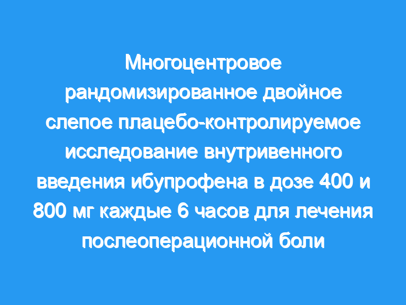 Это исследование было проведено для оценки влияния внутривенного введения ибупрофена 400 и 800 мг q6h на послеоперационное обезболивание.
