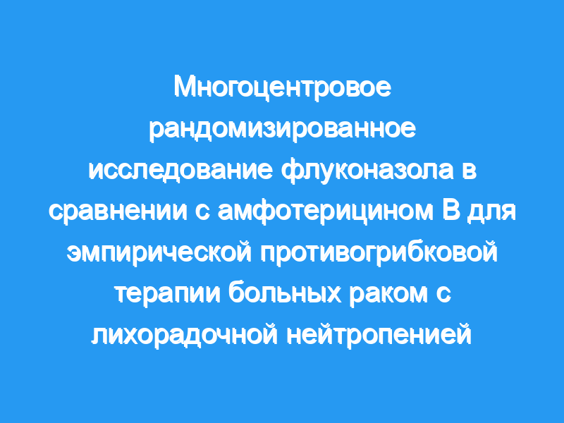 Удовлетворительный ответ наблюдался у 68% пациентов, получавших флуконазол (107 из 158 пациентов), и у 67% пациентов, получавших амфотерицин В (106 из 159 пациентов). Прогрессирующие или новые грибковые инфекции во время терапии произошли у 13 (8%) пациентов, получавших флуконазол (8 с Candida, 5 с Aspergillus) и у 10 (6%) пациентов, получавших амфотерицин В (5 с Candida, 3 с Aspergillus, 2 с другими грибами). Нежелательные явления, связанные с исследуемым препаратом (особенно лихорадка, озноб, почечная недостаточность, электролитные нарушения и респираторный дистресс), чаще встречались у пациентов, получавших амфотерицин В (128 [81%] из 159 пациентов), чем у пациентов, получавших флуконазол (20 [13%] из 158 пациентов, Р = 0,001).. Одиннадцать (7%) пациентов, получавших амфотерицин В, но только 1 (1%) пациент, получавший флуконазол, были исключены из исследования из-за нежелательных явлений (Р = 0,005). Общая смертность (27 [17%] пациентов, получавших флуконазол, против 34 [21%] пациентов, получавших амфотерицин В) и смертность от грибковой инфекции (7 [4%] пациентов, получавших флуконазол, против 5 [3%] пациентов, получавших амфотерицин В) были одинаковыми в каждой исследуемой группе. Внутривенное введение флуконазола может быть эффективной и безопасной альтернативой амфотерицину В для эмпирической противогрибковой терапии у многих пациентов с лихорадочной нейтропенией. Однако, поскольку флуконазол может быть неэффективен при лечении Aspergillus, пациенты с риском развития этой инфекции должны быть обследованы с помощью рентгенографии грудной клетки, компьютерной томографии и посева перед использованием эмпирической терапии флуконазолом.