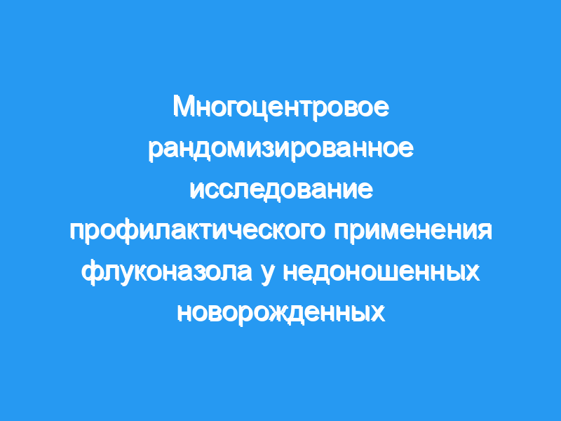 Инвазивные кандидозные инфекции являются основной причиной заболеваемости и смертности недоношенных детей. Мы провели многоцентровое рандомизированное двойное слепое плацебо-контролируемое исследование флуконазола для профилактики грибковой колонизации и инфекции у новорожденных с очень низкой массой тела при рождении.