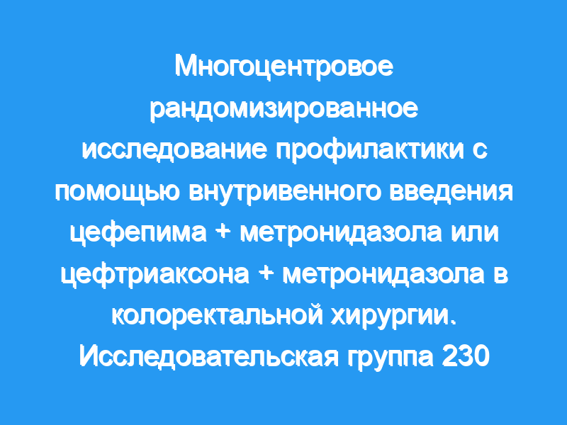 A Таким образом, однократная доза цефепима + метронидазола представляется очень полезной альтернативой другим схемам лечения для профилактики у пациентов, перенесших колоректальную хирургию.