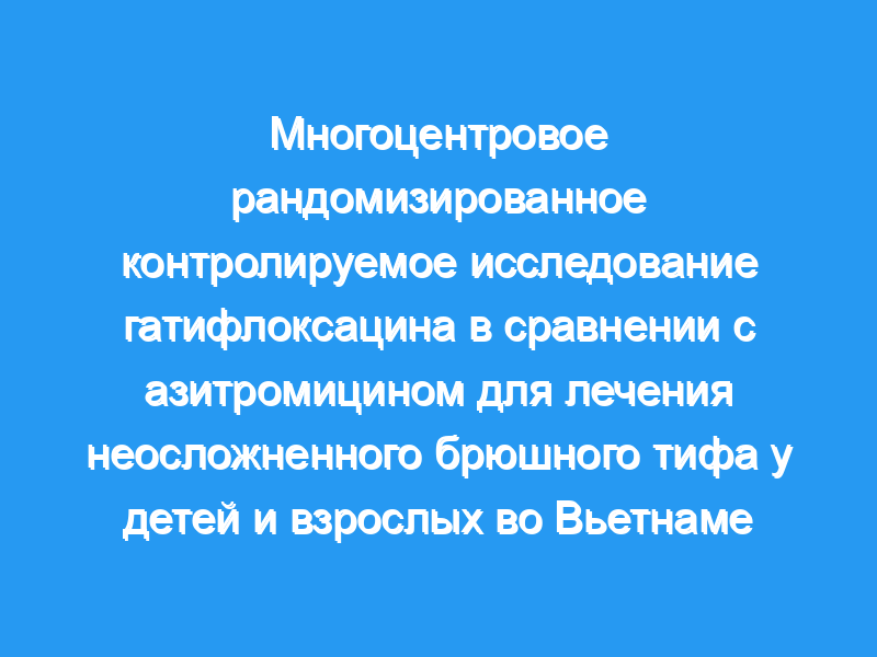 Оба антибиотика показали отличную эффективность и безопасность. Как гатифлоксацин, так и азитромицин могут быть рекомендованы для лечения брюшного тифа, особенно в регионах с высоким уровнем множественной лекарственной устойчивости и резистентности к налидиксовой кислоте. Стоимость 7-дневного курса лечения гатифлоксацином составляет примерно треть стоимости азитромицина во Вьетнаме. Пробная регистрация: Controlled-Trials.com ISRCTN67946944.