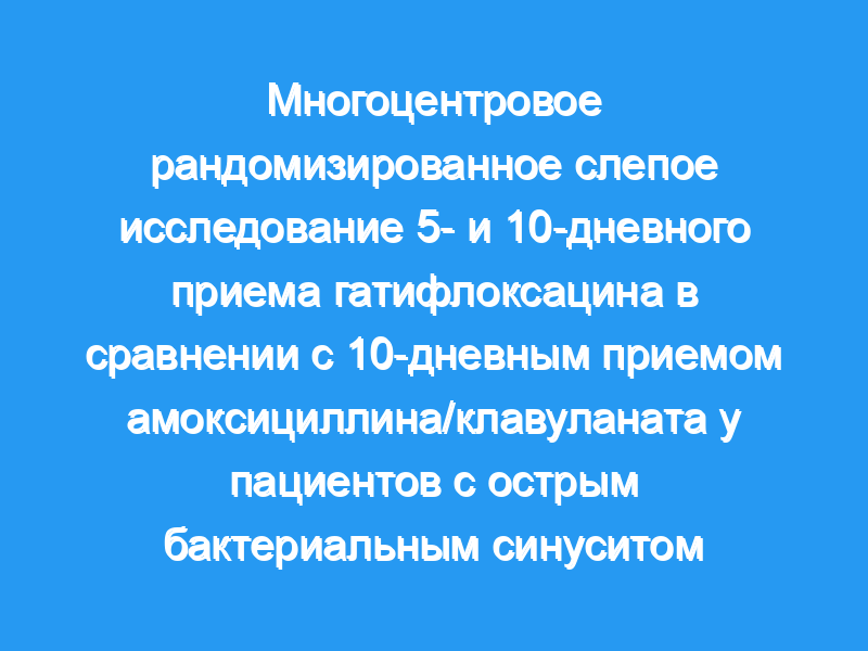 В этом исследовании сравнивалась клиническая эффективность короткого курса (5-дневного) гатифлоксацина со стандартными 10-дневными схемами приема амоксициллина/клавуланата или гатифлоксацина у пациентов с диагнозом острого неосложненного гайморита.