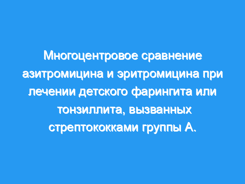 В этом открытом исследовании 93 детям (в возрасте от 2 до 12 лет) с клиническим диагнозом фарингит или тонзиллит, вызванный Streptococcus pyogenes (положительный результат посева и/или ИФА-теста), давали азитромицин в виде разовой суточной дозы 10 мг/кг (максимум 500 мг) в течение трех дней (n = 46), или эритромицина этилсукцинат, 30-50 мг/кг ежедневно в трех разделенных дозах в течение десяти дней (n = 47). У сорока четырех из 46 пациентов, получавших азитромицин, и у 46 из 47 пациентов, получавших эритромицин, S. pyogenes был выделен на исходном этапе и был включен в клинический и бактериологический анализ.