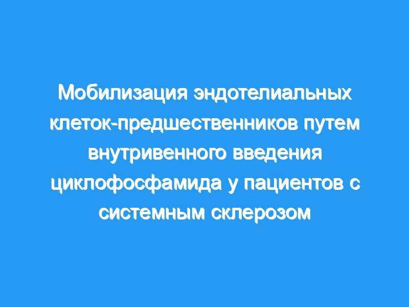 В этом открытом проспективном исследовании приняли участие 12 пациентов с SSc и альвеолитом (группа CYC). Все пациенты получали шесть курсов внутривенного CYC (0,5 г/м2) с интервалом в 4 недели в сочетании с низкими дозами преднизолона. Десять пациентов находились под наблюдением в течение 24 месяцев. Семь пациентов с SSc, получавших только низкие дозы преднизолона, были использованы в качестве контроля для измерения EPC (контрольная группа). Пять пациентов с не-SSc CTD, которые получали внутривенно CYC и преднизолон, также служили контролем заболевания. EPCS определяли количественно путем частичного обогащения CD34+-клеток с последующей трехцветной проточной цитометрией. Циркулирующие уровни маркеров повреждения сосудов измеряли с помощью иммуноанализа.