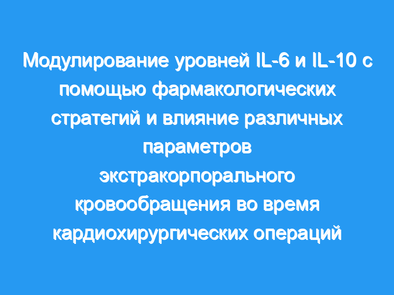 Высвобождение цитокинов после экстракорпорального кровообращения (ЭКК) можно регулировать фармакологически и с помощью отдельного режима перфузии.