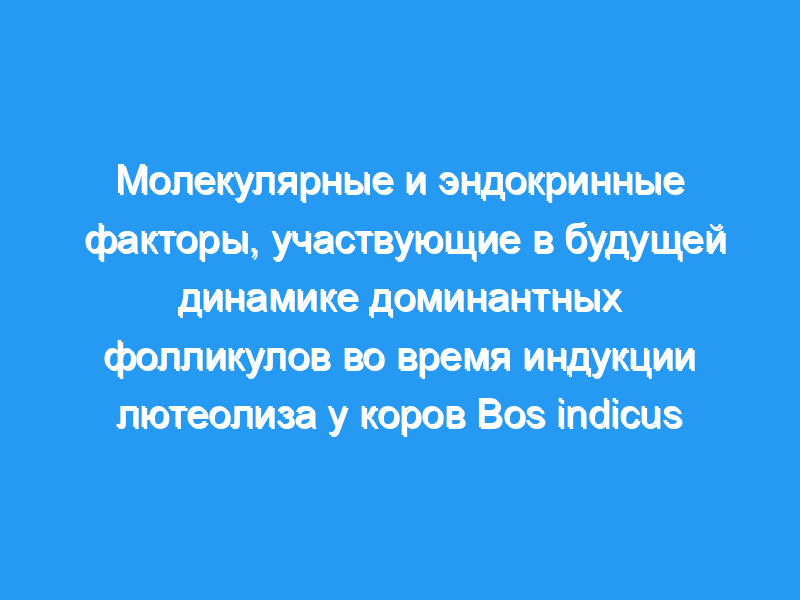 У коров с БД было больше транскриптов LHR (Р = 0,04). Остальные тестируемые переменные были одинаковыми между экспериментальными группами (P >, 0,05). В заключение, индукция лютеолиза до отклонения фолликула не влияет на динамику доминантного фолликула.