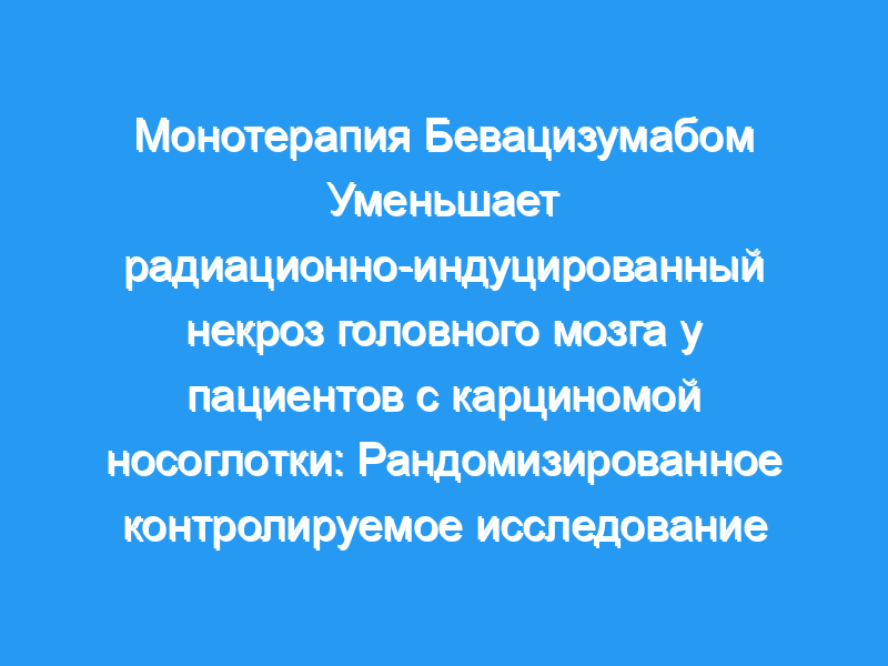 Исследования показали, что добавление бевацизумаба к кортикостероидам улучшает исход лечения радиационно-индуцированного некроза головного мозга (РН). Здесь мы стремились оценить эффективность и безопасность монотерапии бевацизумабом при РН у пациентов с карциномой носоглотки (NPC). Методы и материалы: В этом многоцентровом открытом исследовании пациенты с РН были рандомизированы (1:1) в группу бевацизумаба (5 мг/кг внутривенно каждые 2 недели, в течение 4 циклов) или группу кортикостероидов (метилпреднизолон 500 мг/сут внутривенно в течение 3 дней подряд, а затем постепенно уменьшался, затем пероральный прием преднизолона в дозе 10 мг/сут в общей сложности в течение 2 месяцев). Магнитно-резонансная томография (МРТ) проводилась до и после лечения для определения рентгенологического ответа. Первичным результатом была 2-месячная частота ответа, определяемая по данным МРТ и клиническим симптомам. Все пациенты находились под наблюдением в течение 6 месяцев. Судебное разбирательство было зарегистрировано по адресу www.clinicaltrials.gov (NCT01621880).