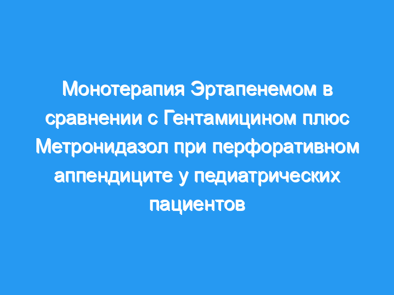Как эртапенем, так и гентамицин плюс метронидазол являются безопасными и эффективными терапевтическими вариантами для лечения диффузного перитонита у педиатрических пациентов. Лечение эртапенемом приводит к снижению частоты осложнений, сокращению времени до афебрильного состояния и сокращению времени пребывания в больнице.