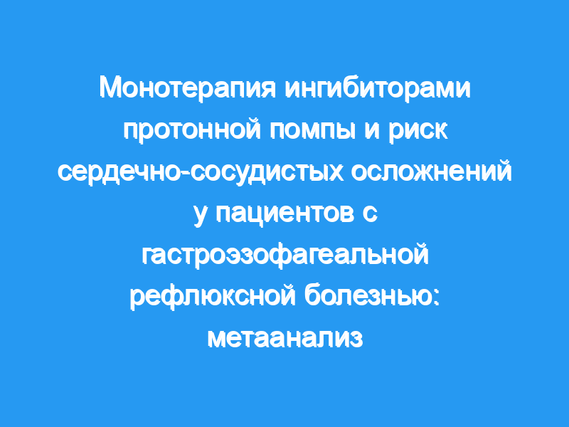 Предпосылки и цель: Ингибиторы протонной помпы (ИПП) обычно используются в качестве мощных антагонистов секреции желудочной кислоты при желудочно-пищеводных расстройствах, и их общая безопасность у пациентов с желудочно-пищеводной рефлюксной болезнью (ГЭРБ) считается хорошей, и они хорошо переносятся. Однако недавние исследования показали, что ИЦП может быть потенциальным независимым фактором риска сердечно-сосудистых нежелательных явлений. Целью нашего мета-анализа было изучение связи между монотерапией ИППП и сердечно-сосудистыми событиями у пациентов с ГЭРБ.