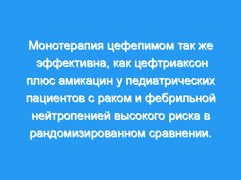 Монотерапия CFP, по-видимому, столь же эффективна и безопасна, как и CFT+AK, для начальной эмпирической терапии у детей и подростков с FN.