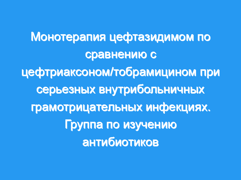Мы сравнили монотерапию цефтазидимом с цефтриаксоном/тобрамицином в проспективном рандомизированном клиническом исследовании, в котором приняли участие 580 пациентов с тяжелой внутрибольничной инфекцией.