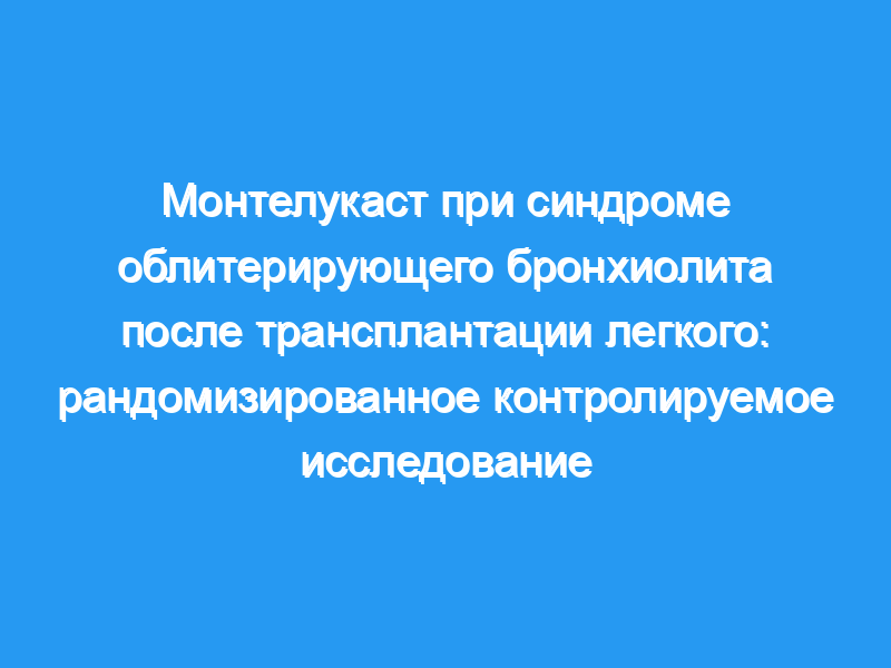 Дизайн исследования представляет собой одноцентровое, проспективное, интервенционное, рандомизированное, двойное слепое, плацебо-контролируемое исследование с двумя параллельными группами и соотношение распределения 1:1. Рандомизация на дополнительный монтелукаст (10 мг/сут, n = 15) или плацебо (n = 15) проводилась с 2010 по 2014 год в Университетских больницах Левена (Левен, Бельгия) у всех последовательных пациентов с поздним началом (>, 2 года после трансплантации) BOS ≥1. Первичной конечной точкой было отсутствие потери трансплантата через 1 год после рандомизации, вторичными конечными точками были острое отторжение, лимфоцитарный бронхиолит, частота респираторных инфекций и изменение ОФВ1, дыхательных путей и системного воспаления в течение периода исследования.