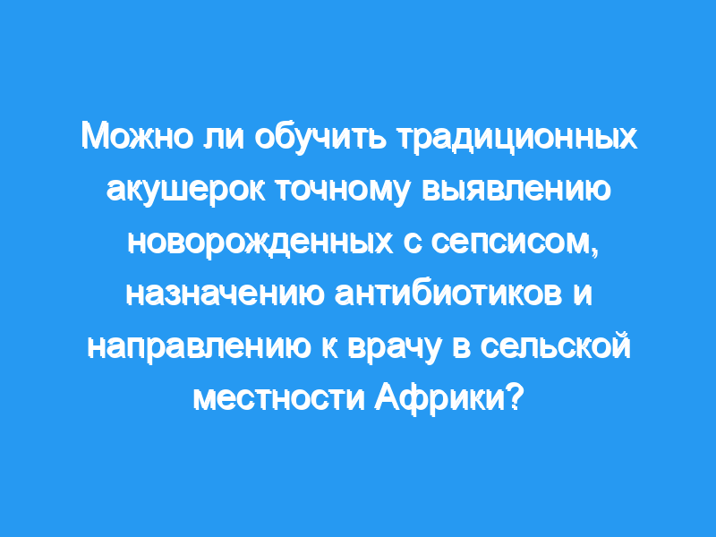 Неонатальный сепсис является основной причиной неонатальной смертности. В группах населения с ограниченным доступом к медицинскому обслуживанию раннее выявление бактериальных инфекций и назначение антибиотиков местными медицинскими работниками может спасти жизнь. Неизвестно, будет ли эта стратегия осуществима с использованием традиционных акушерок (TBA), персонала CHW, которые, как правило, имеют ограниченную подготовку и образование.