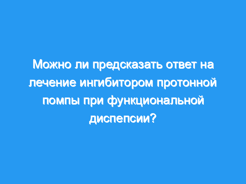Ранний ответ на лечение ингибитором протонной помпы в течение первой недели, по-видимому, предсказывает исход через 4 недели у пациентов с функциональной диспепсией.