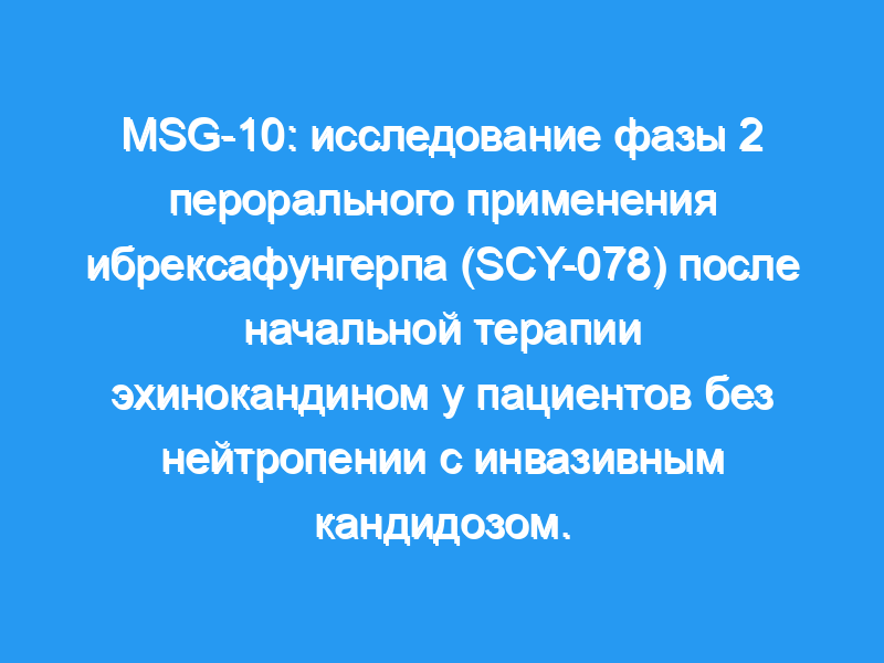 Оценить безопасность и эффективность двух режимов приема перорального ибрексафунгерпа (ранее SCY-078), нового перорального биодоступного ингибитора β-глюкансинтазы, у пациентов с инвазивным кандидозом в сравнении со стандартом лечения (SOC) и определить дозу для достижения целевого воздействия (15,4 мкм·ч) в >, 80% от предполагаемой численности населения.