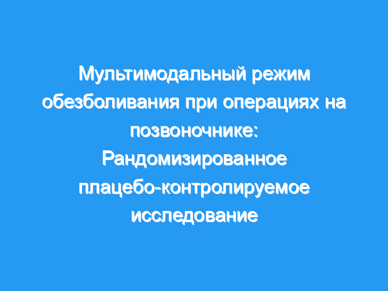 Для хирургии позвоночника были предложены различные мультимодальные обезболивающие подходы. Авторы оценили влияние использования комбинации из четырех неопиоидных анальгетиков по сравнению с плацебо на качество выздоровления, послеоперационное потребление опиоидов и показатели боли.