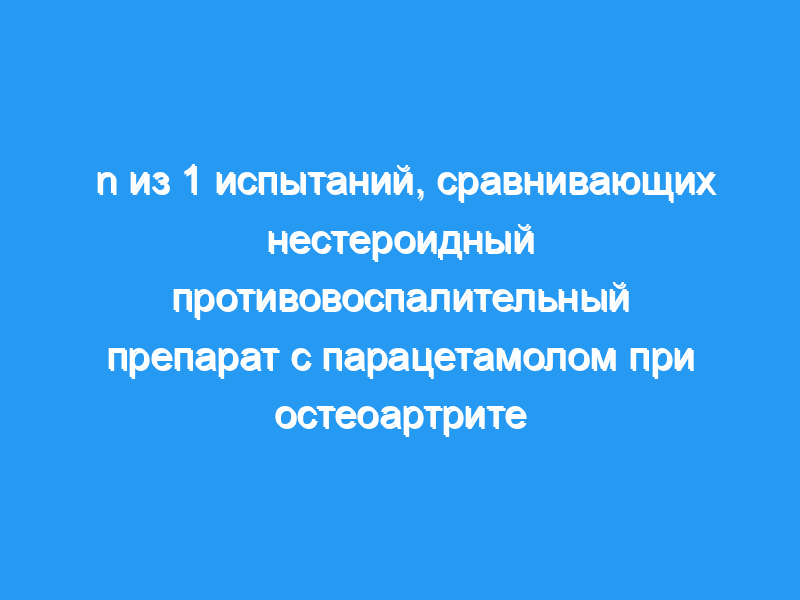 Исследования 1 — то есть рандомизированные исследования с участием отдельных пациентов — клинически полезны при выборе лечения при гетерогенных состояниях, требующих длительного облегчения симптомов. При остеоартрите многие пациенты, которые в настоящее время получают или рассматривают возможность назначения нестероидных противовоспалительных препаратов, могут достичь адекватного контроля с помощью парацетамола.