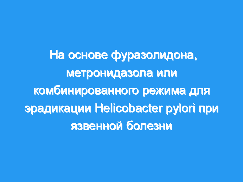 Недельный прием фуразолидона с последующим недельным приемом метронидазола так же эффективен, как и двухнедельный прием фуразолидона. но с меньшим количеством побочных эффектов. Схемы на основе фуразолидона превосходят схемы на основе метронидазола для эрадикации H. pylori в Иране.
