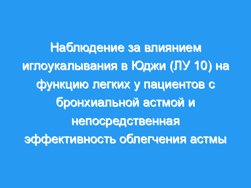 Иглоукалывание в Юджи (LU 10) действует на облегчение астмы в течение острый приступ бронхиальной астмы. Он быстро достигает немедленного эффекта, а эффективность является наилучшей через 30 минут удержания иглы, что равно аэрозолю сальбутамола.
