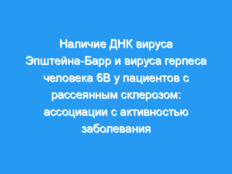 Оценить наличие ДНК вируса Эпштейна-Барр (EBV) и вируса герпеса человека 6B (HHV-6B) в слюне и плазме пациентов с рассеянным склерозом (РС), включенных в рандомизированное двойное слепое плацебо-контролируемое исследование лечения валацикловиром.