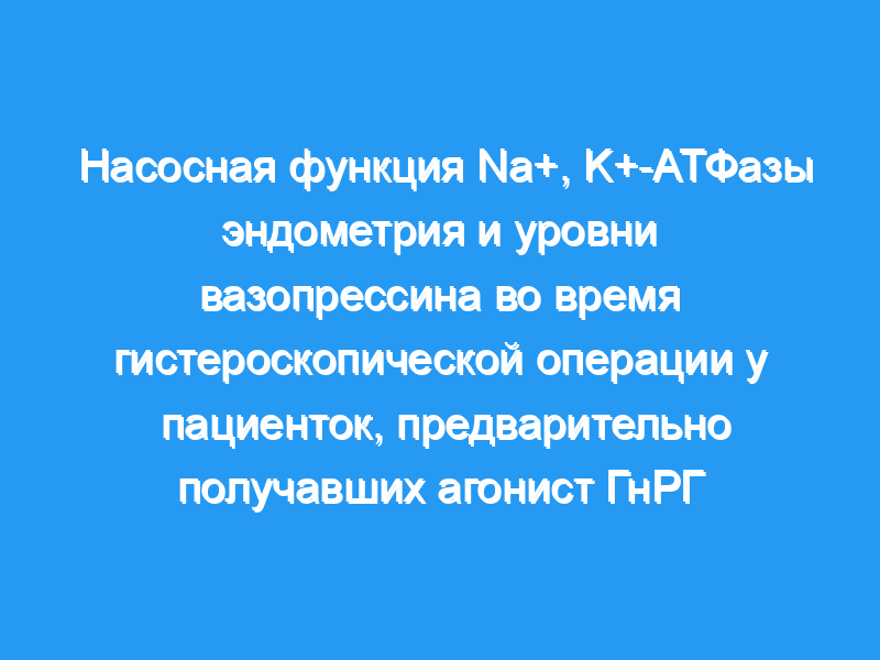 Изучить влияние предварительной обработки аналогом гонадотропин-рилизинг-гормона (ГнРГ) на насосную функцию Na+, K+-аденозинтрифосфатазы (АТФазы) эндометрия и уровни вазопрессина в периферической крови, а также их роль в всасывании жидкости и механизмах гипонатриемии у пациенток, перенесших гистероскопическую абляцию эндометрия. Дизайн: Проспективное рандомизированное плацебо-контролируемое исследование (классификация I Канадской целевой группы).
