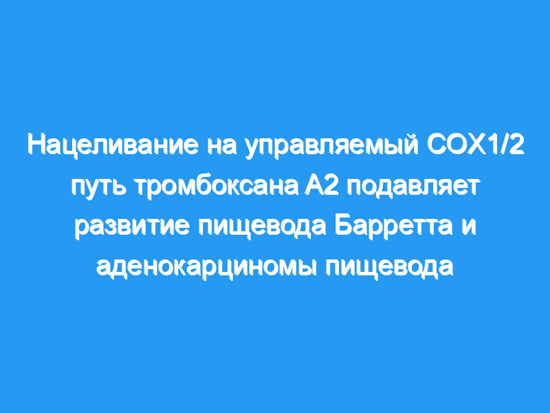 Образцы биопсии пациента оценивали на наличие COX1/2 и экспрессии тромбоксан-А2-синтазы (TBXAS). Биосинтез циркулирующих простагландинов определяли с помощью наборов для иммуноферментного анализа. Для оценки роста клеток BE и EAC были проведены анализ роста клеток, не зависящий от привязки, анализ окрашивания кристаллическим фиолетовым и эксперименты с ксенотрансплантатом. Была создана хирургическая мышиная модель рефлюкса (т.е. эзофагодуоденостомы), и образцы были проанализированы с использованием набора для иммуноферментного анализа, иммуногистохимии, иммуноблоттинга или ОТ-ПЦР. Образцы биопсии пищевода (до и после вмешательства) были получены в ходе рандомизированного клинического исследования, в котором участникам вводили эзомепразол (40 мг) два раза в день в сочетании с плацебо ацетилсалициловой кислоты (АСК) или 81 или 325 мг АСК в течение 28 дней. Были проанализированы образцы биопсии пищевода до и после периода вмешательства. Выводы: COX2 и TBXAS высоко экспрессируются у пациентов с BE и EAC, что сопровождается выраженным повышением уровня циркулирующего TXA2. ASA подавлял рост BE и EAC, нацеливаясь на путь TXA2. Кроме того, биопсии у 49 пациентов (с аналогичными исходными характеристиками) показали, что ASA существенно снижал уровни TXA2 в сыворотке крови, что приводило к уменьшению воспаления. Интерпретация: Это исследование устанавливает важность управляемого COX1 / 2 пути TXA2 в патофизиологии BE и EAC и закладывает основу для внедрения стратегии, нацеленной на TXA2, для профилактики и раннего выявления EAC. Финансирование: Фонд Хормела, Точные науки, Pentax Medical, Intromedic и National Cancer.