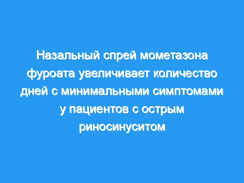 200 мкг НБН два раза в день значительно увеличивали количество дней с минимальными симптомами по сравнению с амоксициллином или плацебо у пациентов с АРС. Результаты этой интраназальной терапии кортикостероидами (INS) указывают на то, что она может улучшить результаты и потенциально уменьшить нецелевое применение антибиотиков.