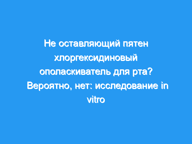 Основываясь на обширной литературе о корреляции этого теста in vitro с активностью хлоргексидина против зубного налета и склонностью к окрашиванию in vivo, эти ополаскиватели ADS будут обладать той же эффективностью против зубного налета и способностью вызывать окрашивание, что и известные ополаскиватели с хлоргексидином.