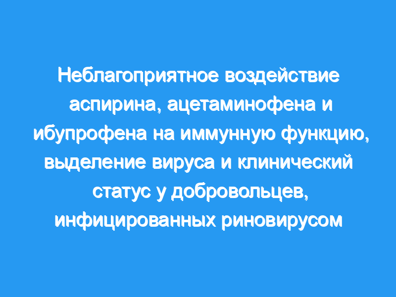 Шестидесяти здоровым добровольцам интраназально ввели риновирус 2-го типа. и рандомизированы в одну из четырех групп лечения: аспирин, ацетаминофен, ибупрофен или плацебо.